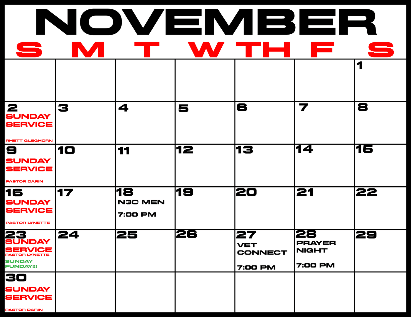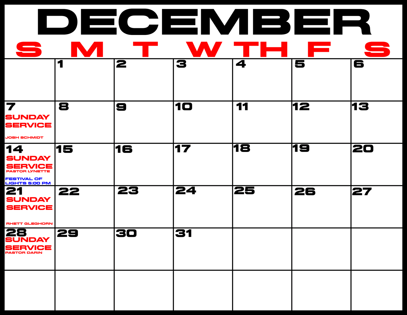 Look below to see what's happening that day or click the button to be taken to our Planning Center Calendar!